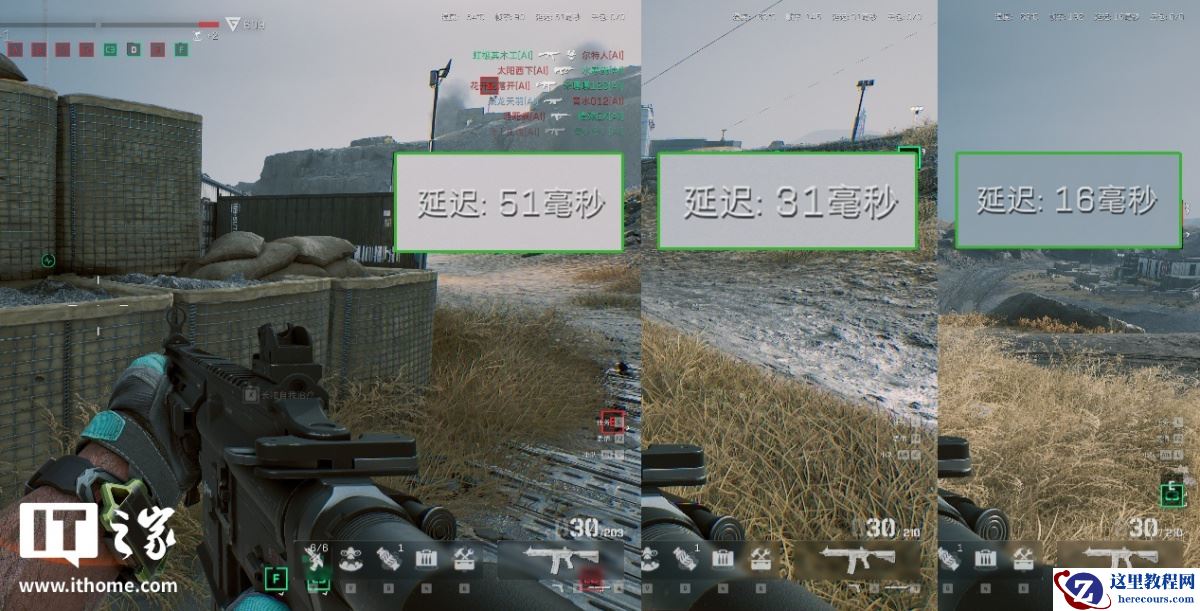 第二款是《三角洲行动》,其「全面战场」多人攻防模式,最能体现延迟的重要性,游戏中也提供了 Reflex 低延迟选项,经过实测: