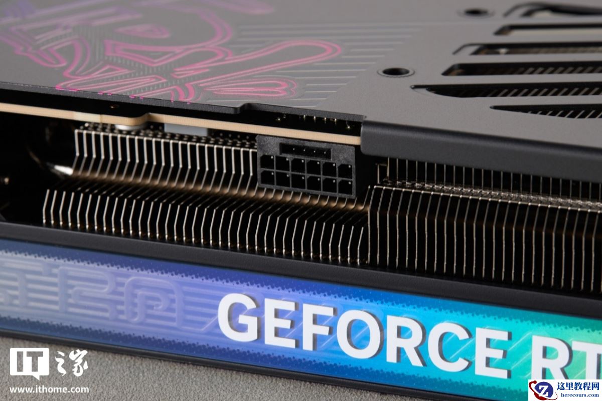 显卡背板部分的设计布局与白色版保持一致,但黑色背景涂装下更显高级感。另外,它的显卡背板与白色款还有一个小区别,那就是供电接口的专属开槽只有浅浅的一道,没有老款面积大。