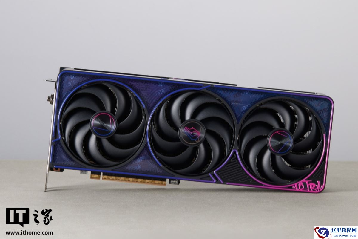 首先,显卡涂装并没有直接换成黑色,而是采用了海蓝色与莓粉色的撞色设计,配色比较大胆,能够更加凸显街头嘻哈文化的潮酷感。另外,显卡散热装甲的图案及文字都经过了艺术化处理,使得整张卡看起来非常富有活力且极具视觉张力,这些装饰元素覆盖了正面装甲、风扇、显卡背板以及侧边,为硬件注入了独特的个性。