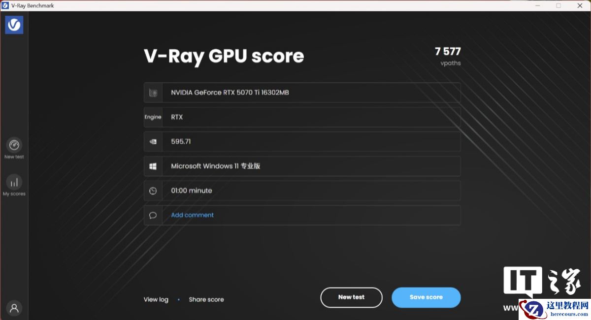 iGame RTX 5070 Ti Ultra SFF 显卡得分为 7577 分;