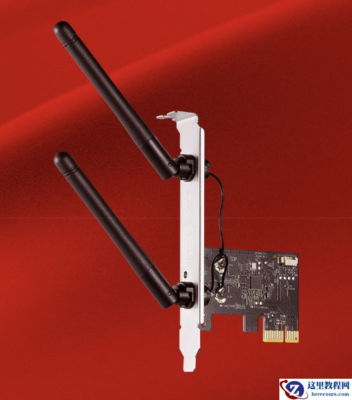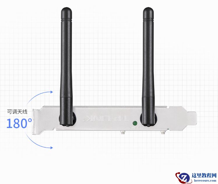 据介绍,该无线网卡提供两根 180 度可调天线,内置无线驱动,支持 Windows 10/11 系统,适用于 PCI-E X1(短)插槽。
