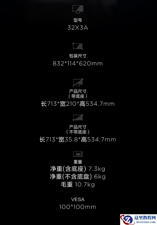 附显示器参数: