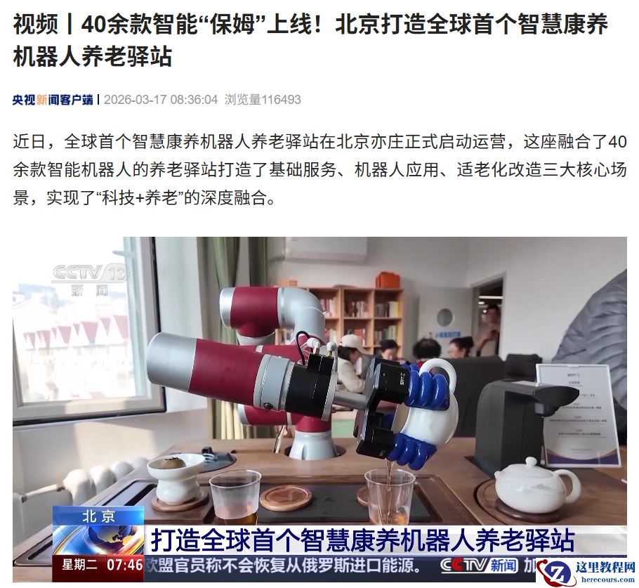 3 月 17 日消息,据央视新闻今日报道,全球首个智慧康养机器人养老驿站在北京亦庄正式启动运营,这座融合了 40 余款智能机器人的养老驿站打造了基础服务、机器人应用、适老化改造三大核心场景,实现了“科技 + 养老”的深度融合。