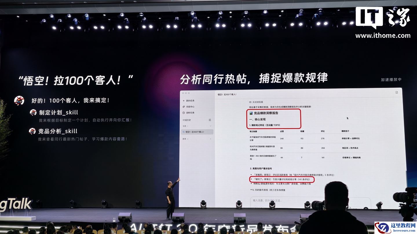 具体功能方面,“悟空”平台可为商业用户提供一系列计划方案 / 应用开发能力,例如用户要求悟空“拉新 100 个客人”,该平台便会自动制定计划、分析同行热帖捕捉爆款规律、自动发帖、自动回复,从而实现从需求沟通到应用开发一站式解决方案。