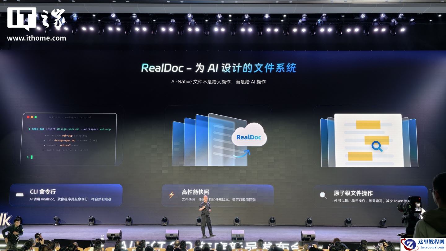 钉钉还介绍了“悟空”平台的 RealDoc AI 原生文件系统,该系统号称专为 AI 设计,使用 CLI 命令行构成,提供 10000+ 可用命令行指令,拥有“原子级文件操作”和高性能快照能力,便于企业存储管理、权限管理、审计管理等操作。