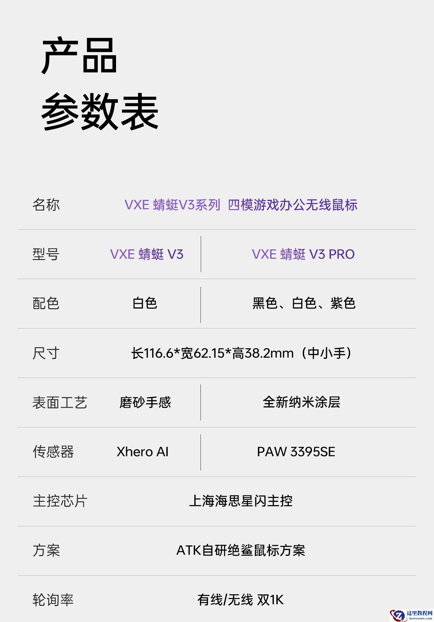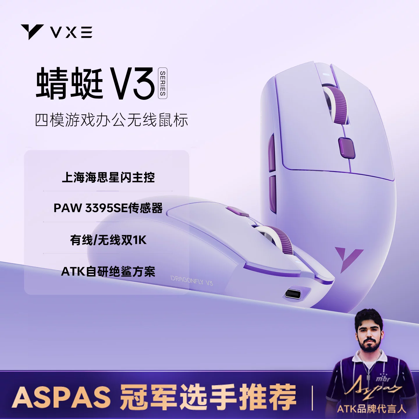 3 月 17 日消息,ATK 旗下 VXE 正式推出了蜻蜓 V3 鼠标,今晚 20:00 发售。该系列采用准对称的中小手模具,兼容各种握持姿势,标准版首发优惠价 59 元、PRO 版首发优惠价 89 元。