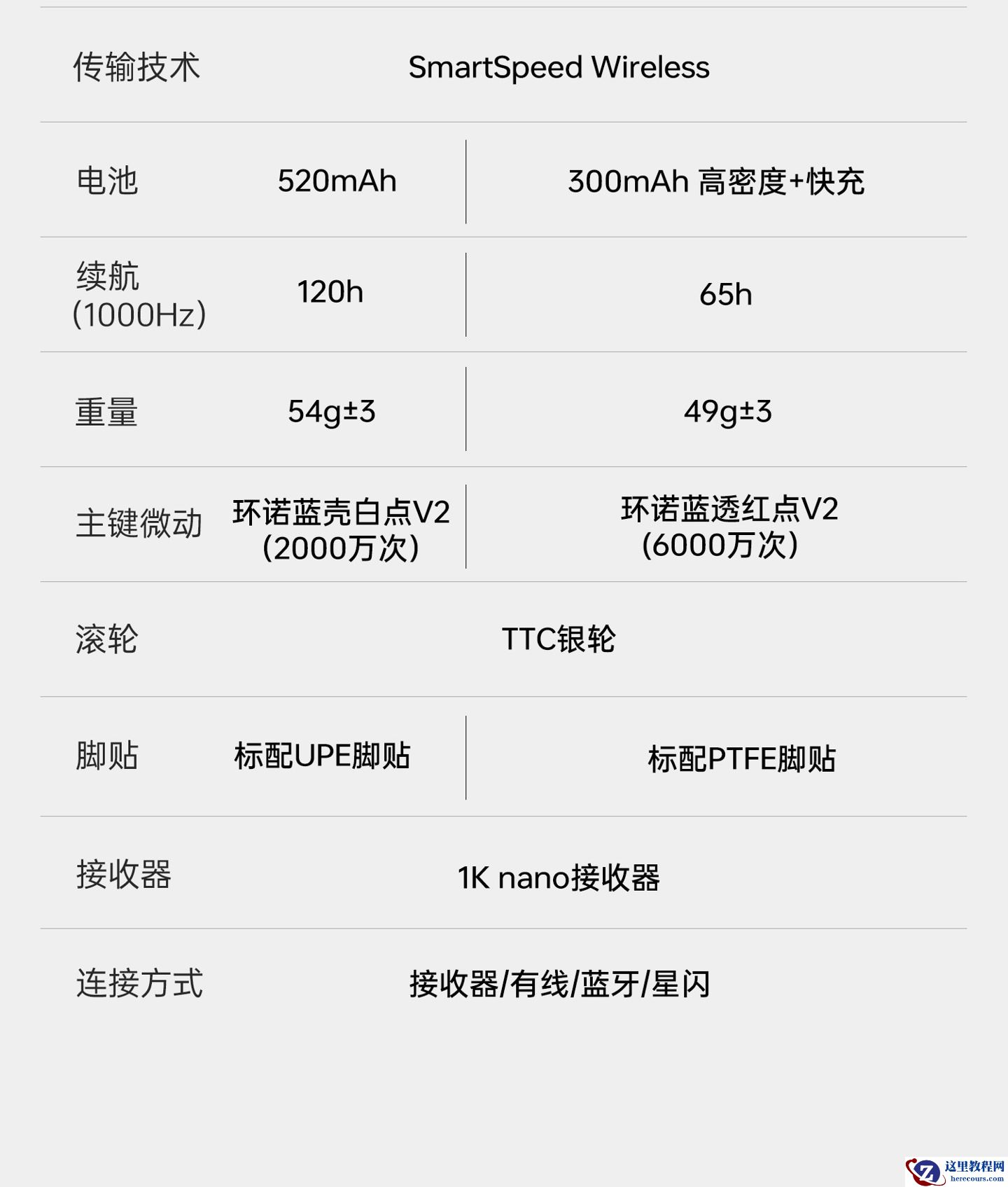 该鼠标的标准与 PRO 版本之间存在显著配置差异,附上产品规格参数信息: