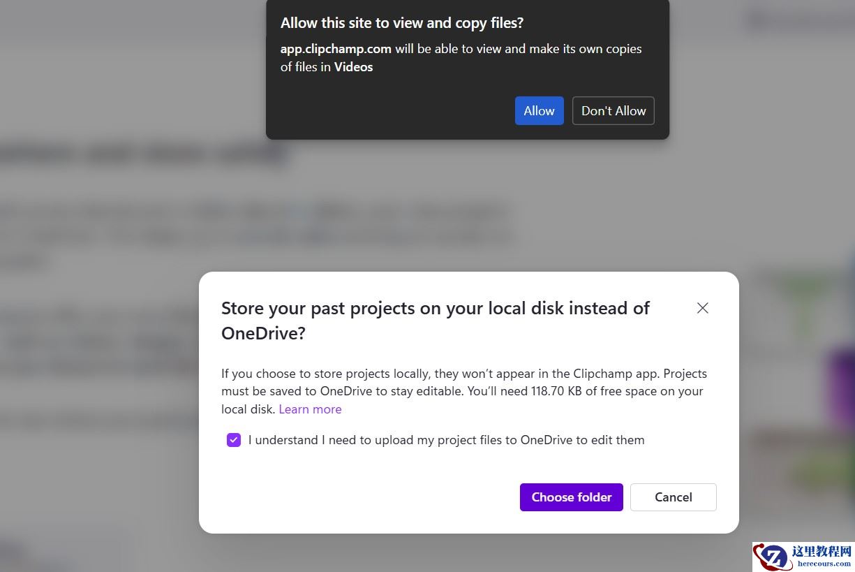 无论如何,现在要想使用 Clipchamp 的唯一方式就是允许它将视频项目保存到 OneDrive。任何在 Clipchamp 中新编辑的视频都会自动在 OneDrive 账户中创建项目文件。