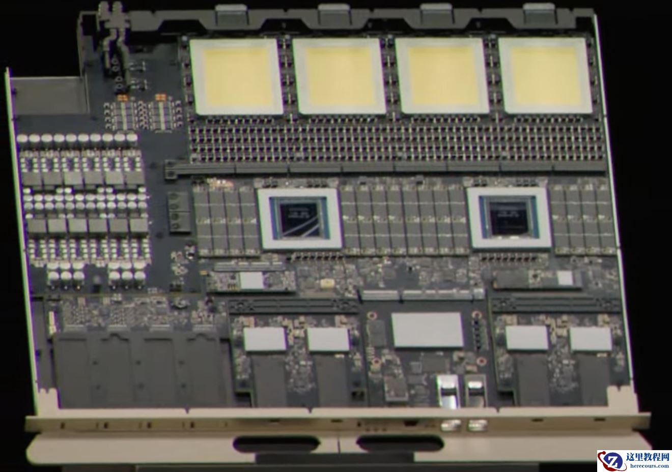 援引博文介绍,基于现场图片,这款四芯粒封装的 Rubin Ultra 采用了全新的封装技术。散热器遮挡了内部细节,且目前尚不确定该芯片是否已完成流片,但其紧凑的封装尺寸暗示其可能采用堆叠设计。