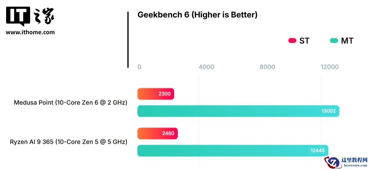 3 月 18 日消息,科技媒体 Wccftech 今天(3 月 18 日)发布博文,报道称在 GeekBench 跑分库中,再次发现了 AMD Medusa Point “Zen 6” APU 的踪迹,6.6.0 版单核成绩 2300 分,多核成绩为 13002 分。