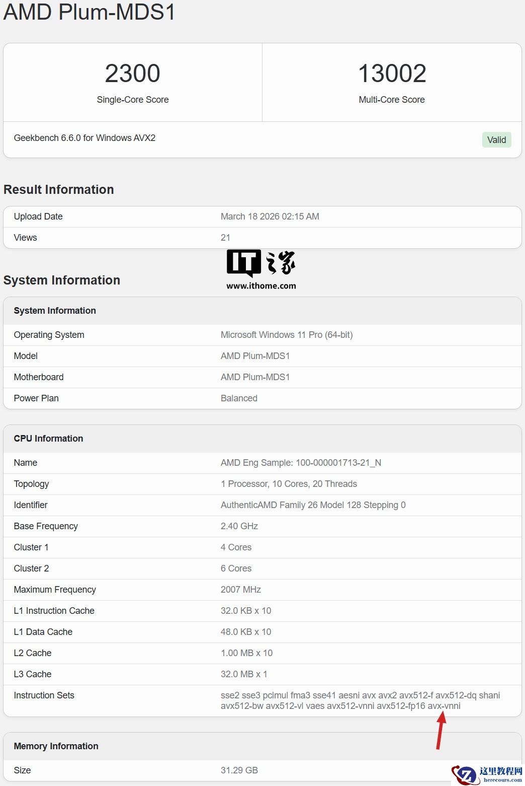 另外跑分页面首次确认“Zen 6”架构支持 FP16“AVX-VNNI”指令集,意味着 AMD 将在 Medusa Point 等下一代 SoC 中提供完整的 FP16 硬件级计算能力。