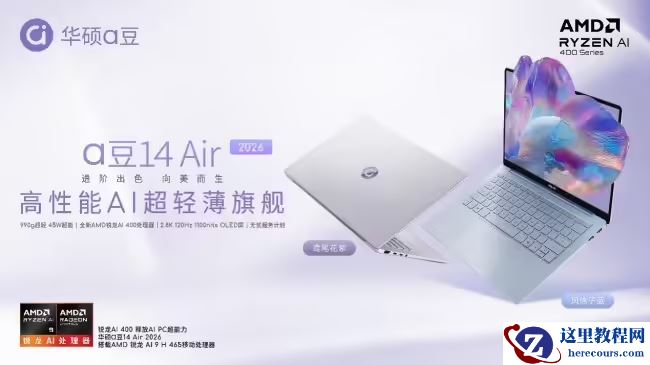 华硕 a 豆 14 Air 2026:990g 超轻 AI 全能本,学生与通勤族首选