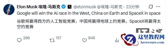 在另外一条帖子中,马斯克称,“谷歌将赢得西方的人工智能竞赛,中国将赢得地球上的竞赛,SpaceX 将赢得太空的竞赛。”