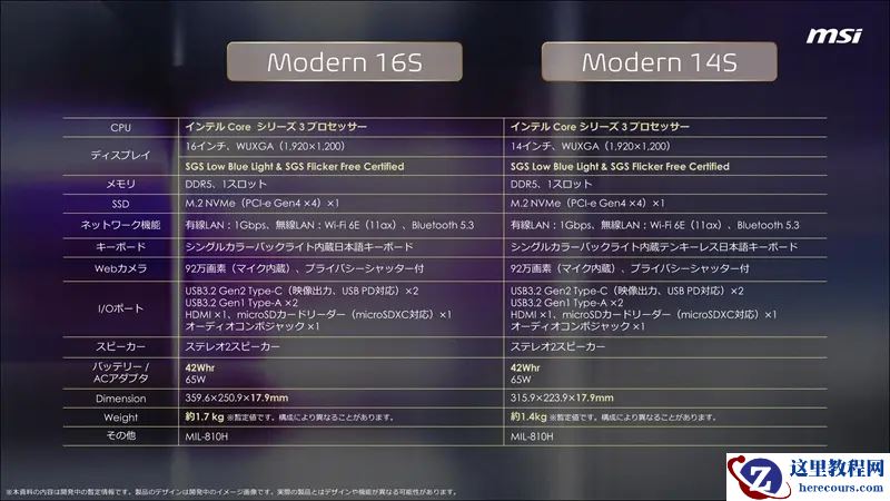 将要搭载英特尔新款入门级移动端处理器的产品为星爵 Modern 16S / 14S,其配备的处理器属于酷睿 7 序列。该机型拥有 1 个 DDR5 内存插槽和 1 个 M.2 PCIe Gen4×4 NVMe 盘位,支持 1GbE LAN 和 Wi-Fi 6 WLAN。