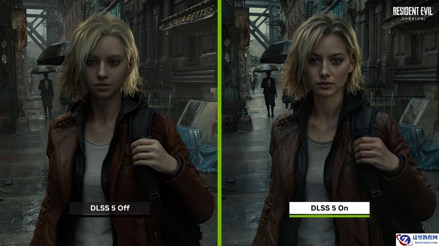 所谓 DLSS 5“AI 换脸”论最关键的证据在于,开启 DLSS 5 后,《生化危机:安魂曲》主角格蕾丝出现了脱离原本游戏设定的妆容,面部特征也被改变,完全无视了场景的阴暗背景和角色的故事设定。