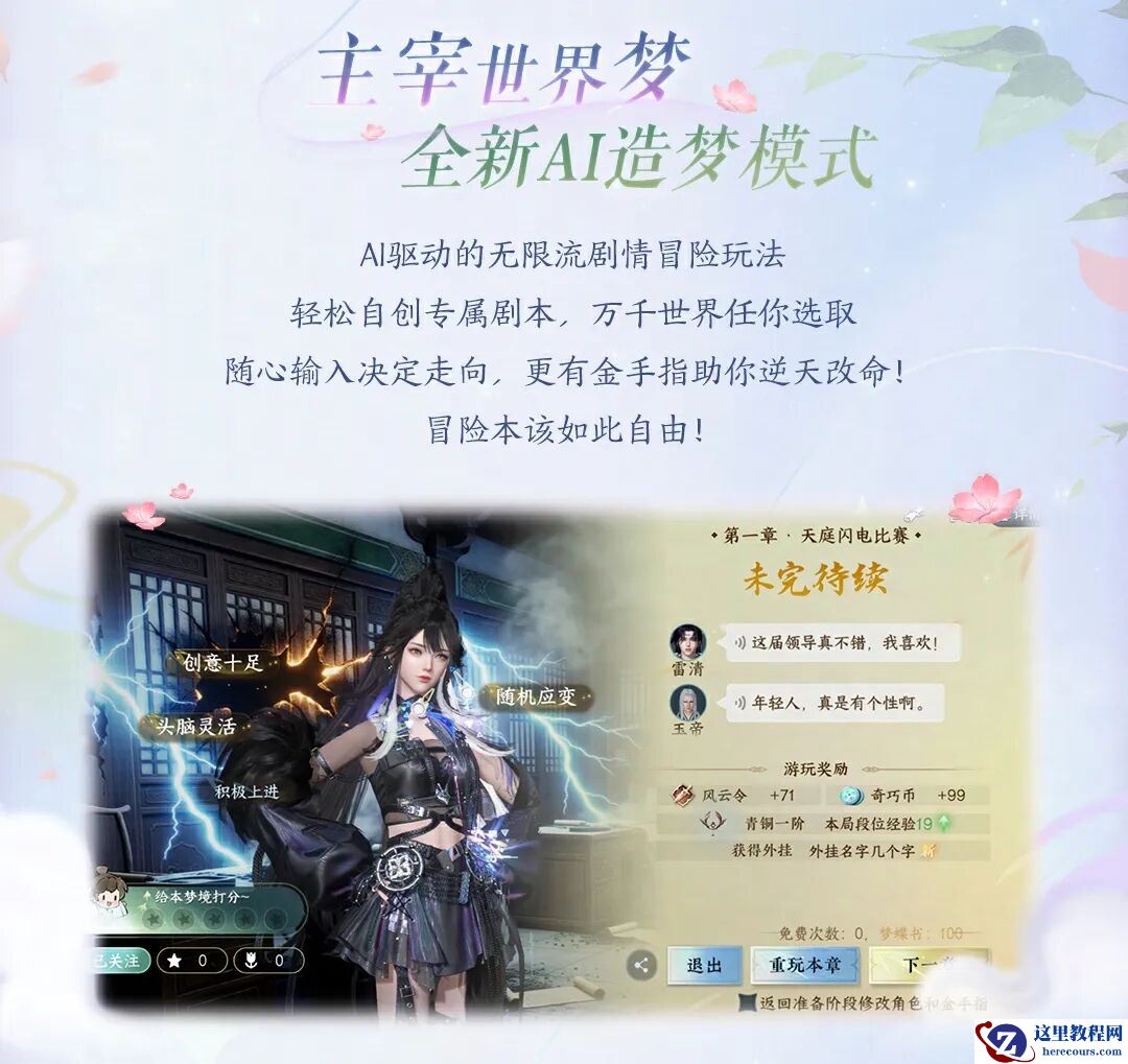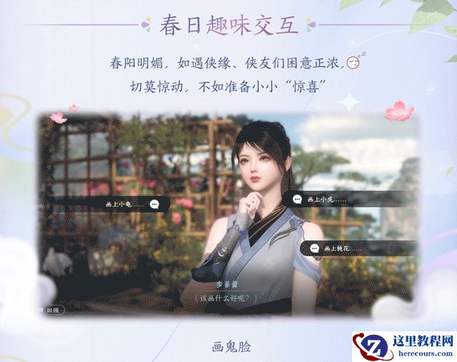 在全新造梦版本中,游戏将迎来多项春日趣味交互,包括画鬼脸、送簪花,还有春日新江湖任务、全新 AI 造梦模式、全新时装设计大赛、全新华章剧情、全新寻境剧情。