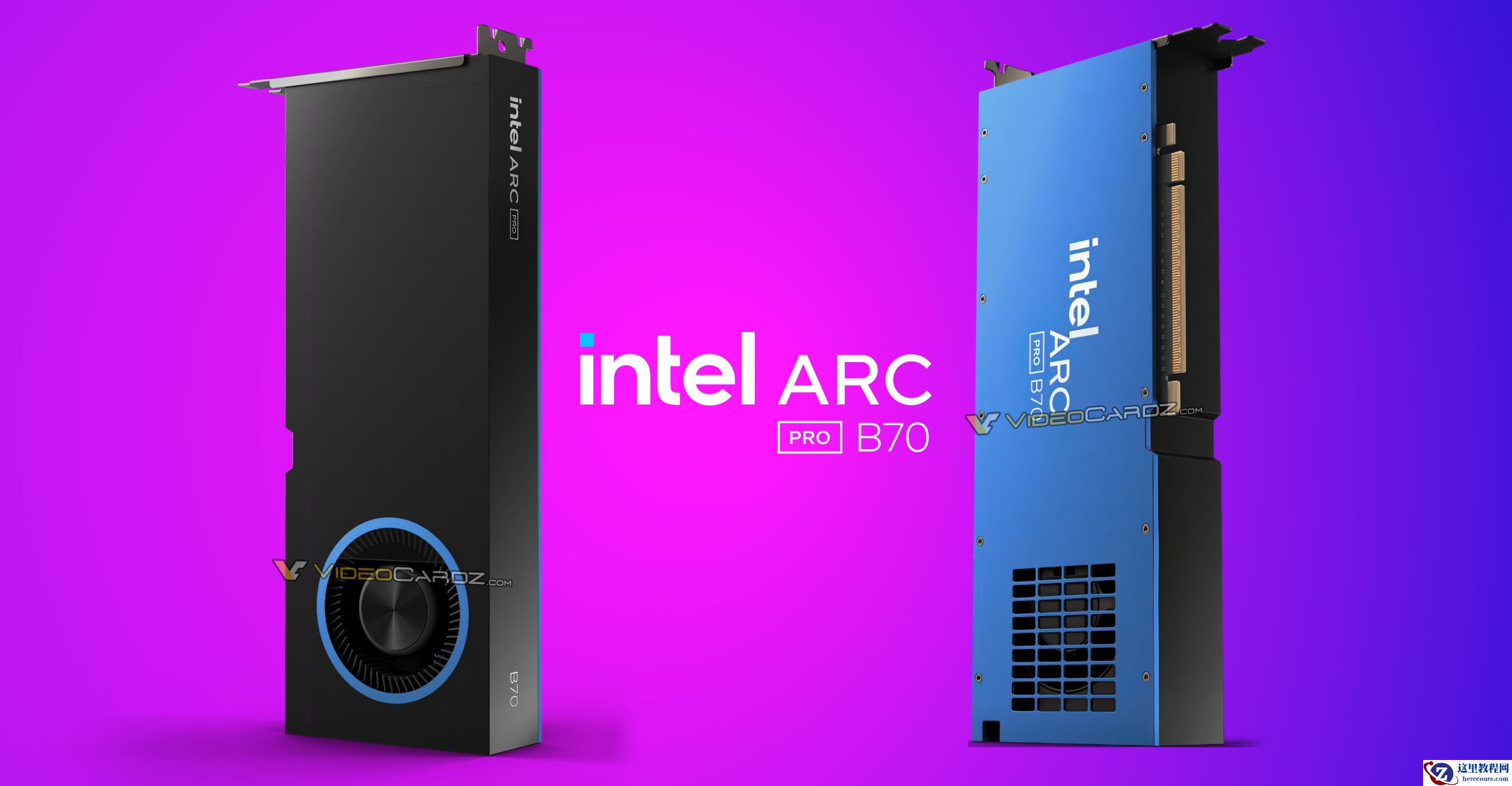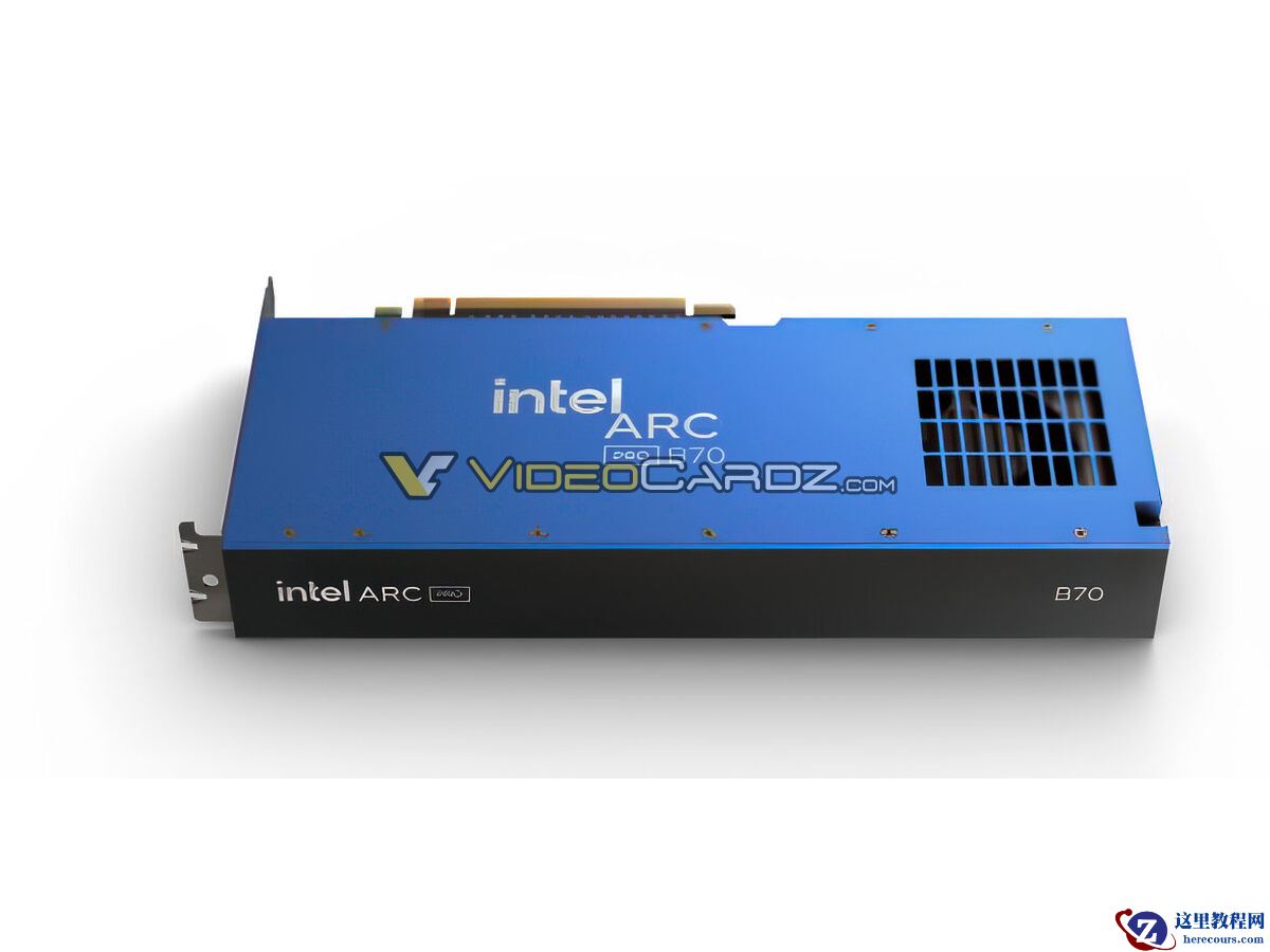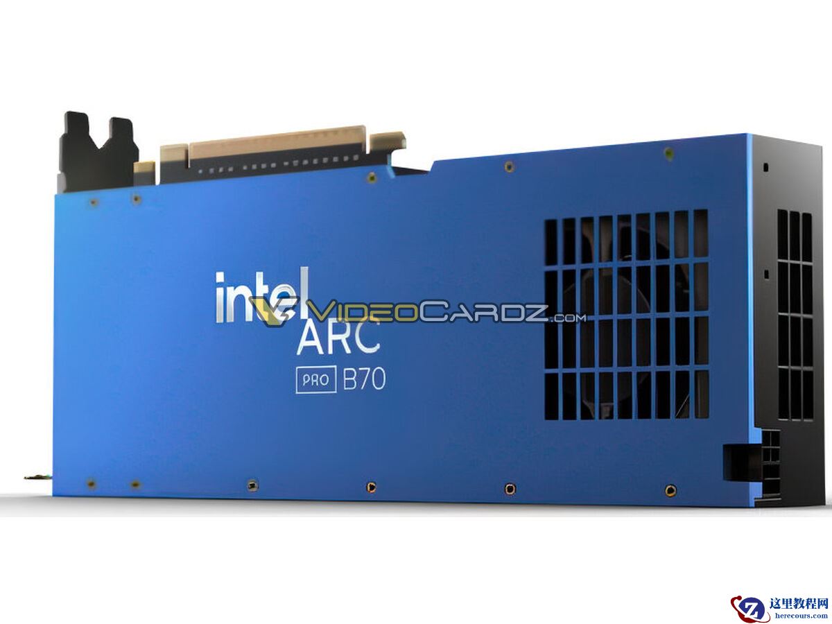3 月 22 日消息,外媒 VideoCardz 北京时间昨晚曝光了英特尔锐炫 Arc Pro B70 专业显卡的公版参考设计渲染图片。