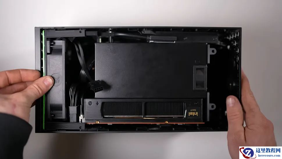 整机其余配置包括一张短款技嘉 RTX 5060 显卡和一个 600W Flex ATX 电源。这套组合让电源可以安装在显卡上方的 Xbox 机箱内,还留有富余空间。如果使用全高显卡,这种布局就无法实现,博主就只能改用外置电源。