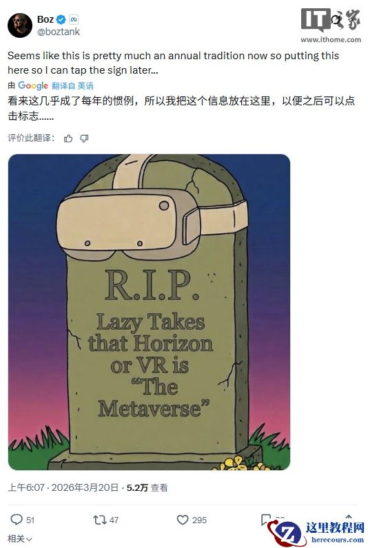 这正是 Meta 首席技术官安德鲁 · 博斯沃思本周在一条推文中想表达的意思:元宇宙不一定非是 Horizon 或 VR。