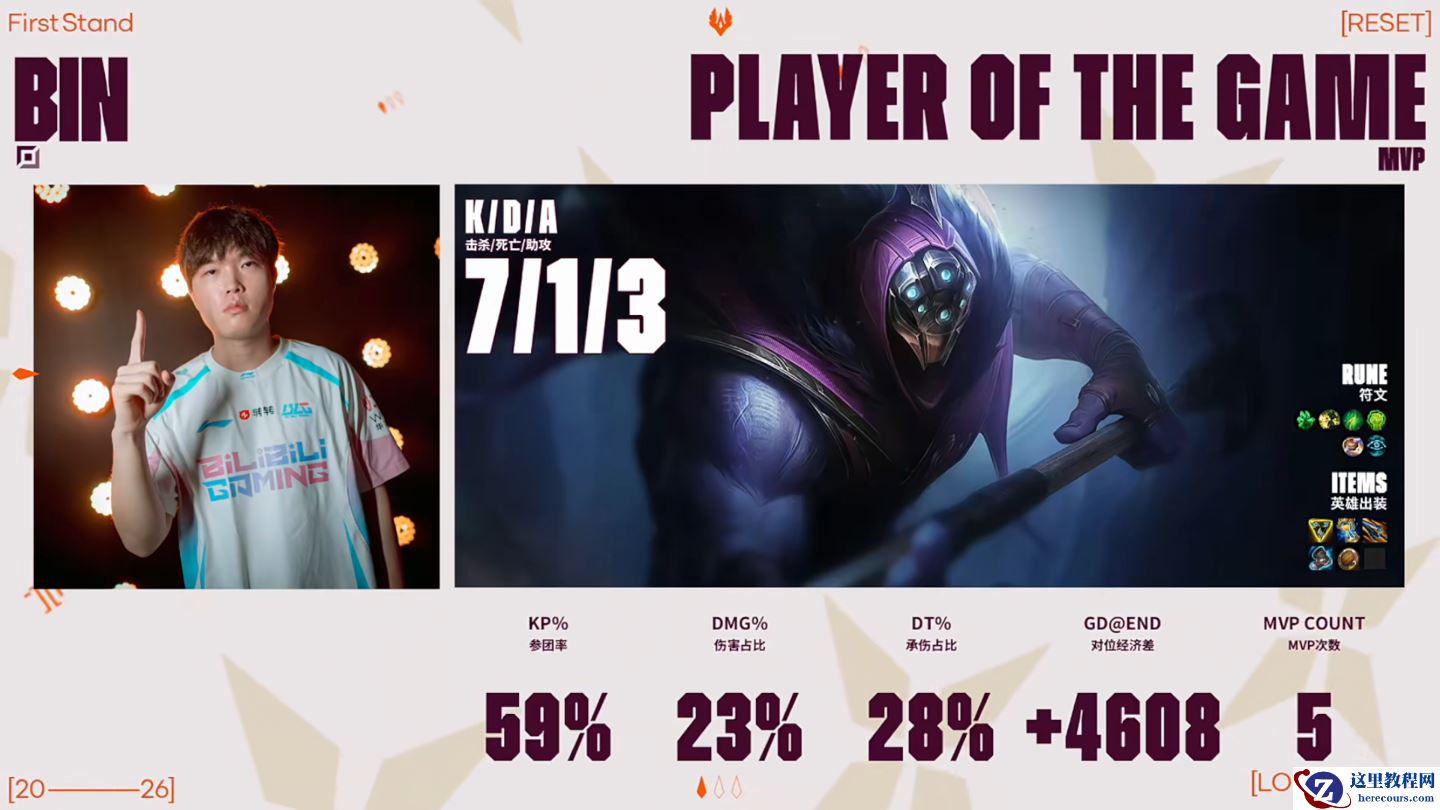 15 分钟,Bin 格温一打三留人,ON 慎关键 E 嘲住妖姬,BLG 完成零换三。