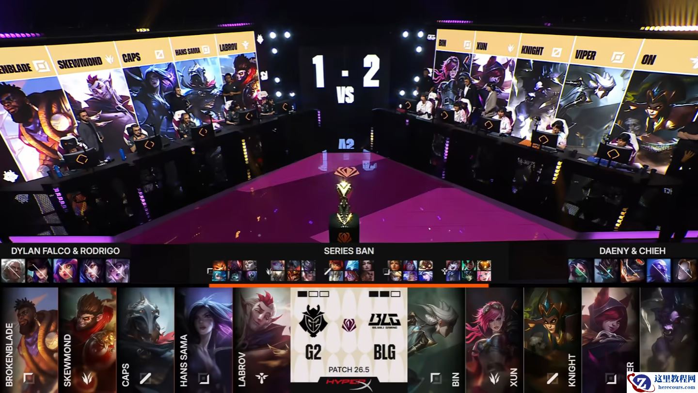 7 分钟,BLG 主动入侵野区,G2 人员先到,Hans Sama 卡莎拿到双杀,G2 完成零换三。