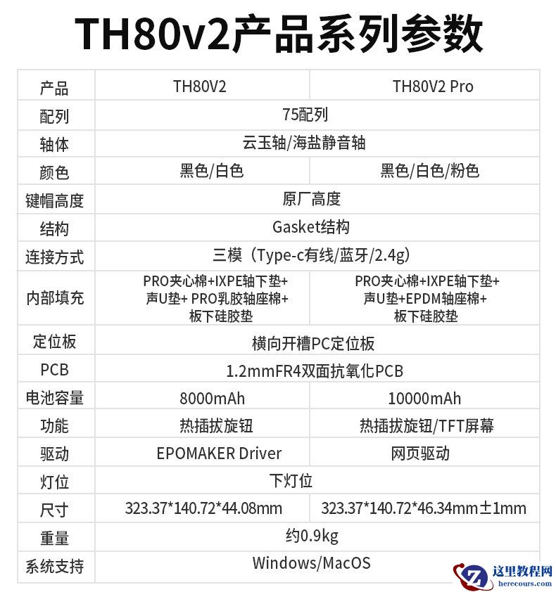 在此附上 TH80 V2 标准款和 PRO 款的区别以及两种轴体的参数: