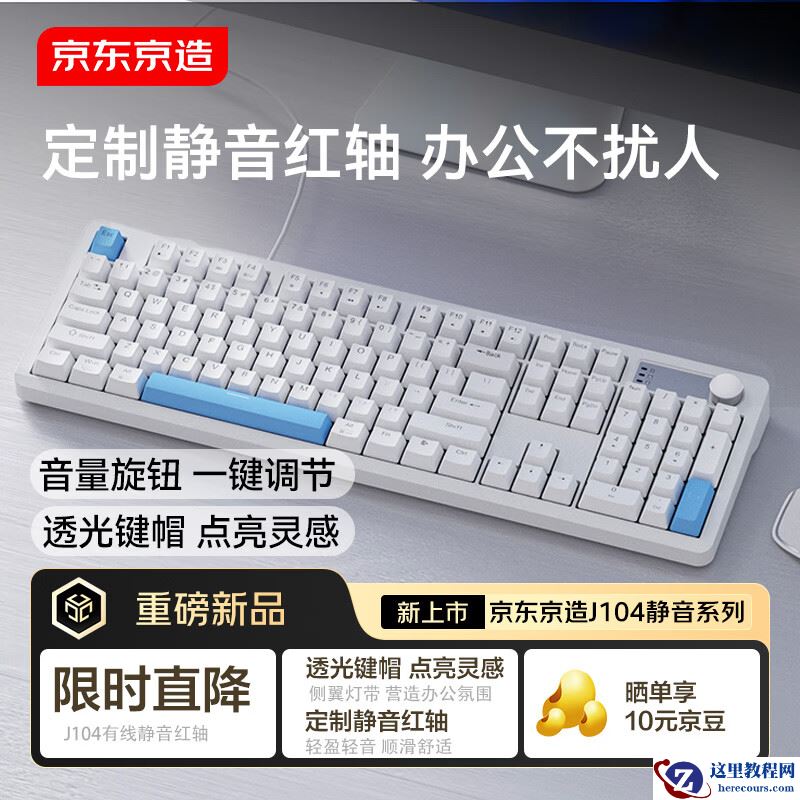 3 月 24 日消息,京东京造现已为旗下 J104 机械键盘新增一款静音红轴版本,该产品使用有线连接,首发价 169 元,晒单享 10 元京豆,到手价不高于 159 元。