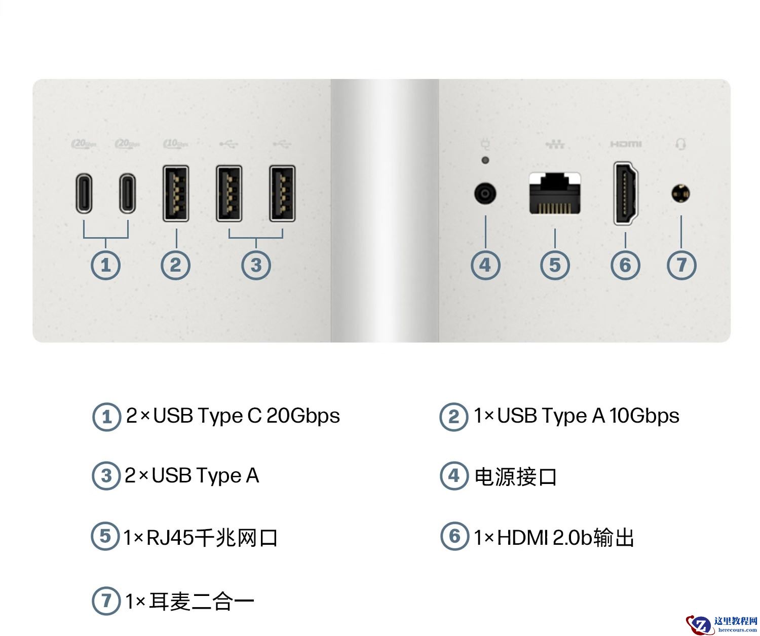 此外,这款电脑还带有全功能支架,具备 2 个 20Gbps Type-C、1 个 USB Type-A 10Gbps、2 个 USB Type-A、1 个千兆以太网、1 个 HDMI 2.0b 以及 1 个 3.5mm 接口,支持 WiFi 6 及蓝牙 5.4。