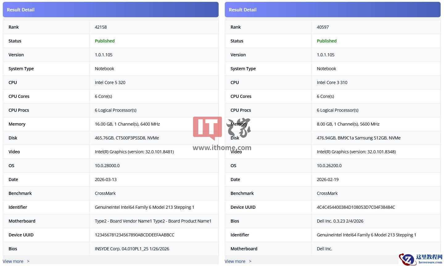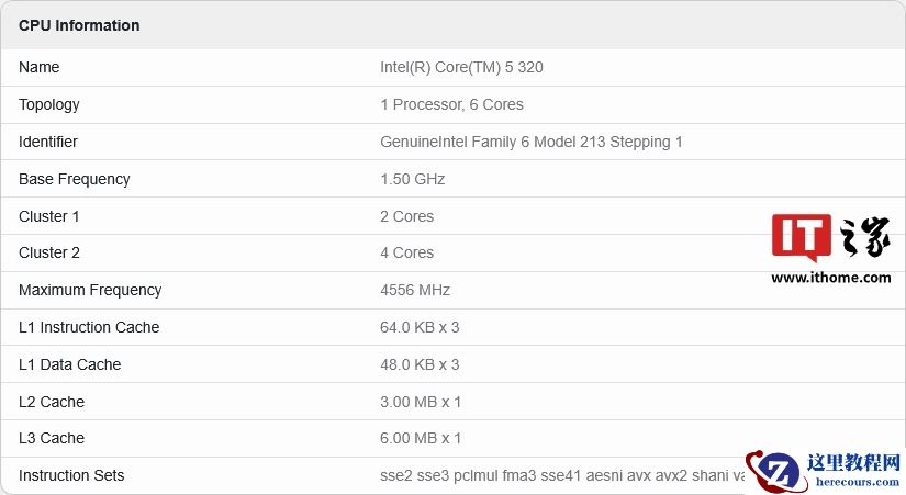 3 月 24 日消息,BAPCo CrossMark 现已记录到了英特尔酷睿 5 320 / 酷睿 3 310 处理器的数据,此外酷睿 5 320 也出现在了 Geekbench 数据库中。