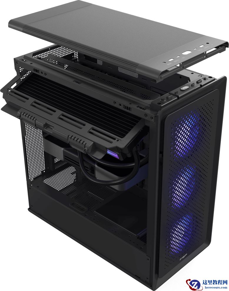 冷却方面,这款机箱前方预装 3 颗 120mm 1600RPM ARGB 风扇,前板和顶板均支持 360 冷排且配备快拆支架,便利风扇 / 冷排安装。此外,其电源舱上方可安装 3 颗 120mm 风扇,后部拥有 1 个 120mm / 140mm 风扇位,前部下方设有显卡进气坡道、底部配备可拆卸防尘网。