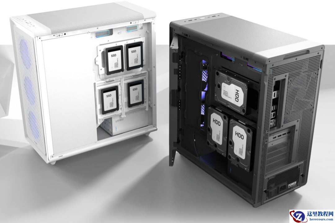 全汉 U590 在主板背部提供了二个 3.5" / 2.5" 盘位和一个 1× 3.5" / 2× 2.5" 盘位,均支持免工具安装。前置 I/O 方面这款机箱提供了 1 个 USB-C、2 个 USB-A 5Gbps 和 1 个二合一音频插孔。