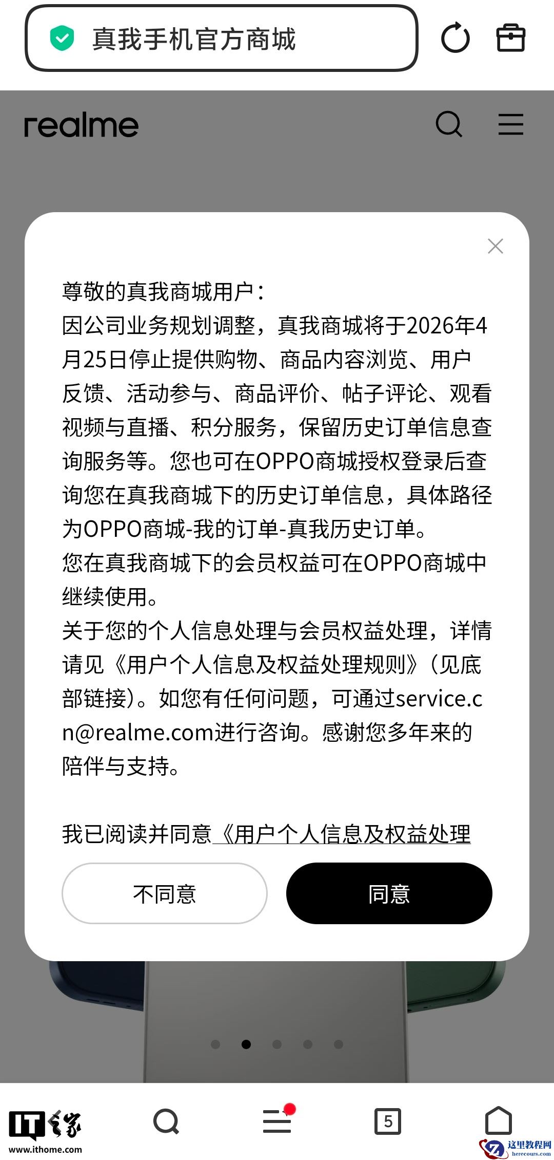 3 月 25 日消息,真我商城今日发布公告称,因公司业务规划调整,真我商城将于 2026 年 4 月 25 日停止提供购物、商品内容浏览、用户反馈、活动参与、商品评价、帖子评论、观看视频与直播、积分服务,保留历史订单信息查询服务等。用户也可在 OPPO 商城授权登录后查询在真我商城下的历史订单信息,具体路径为 OPPO 商城-我的订单-真我历史订单。