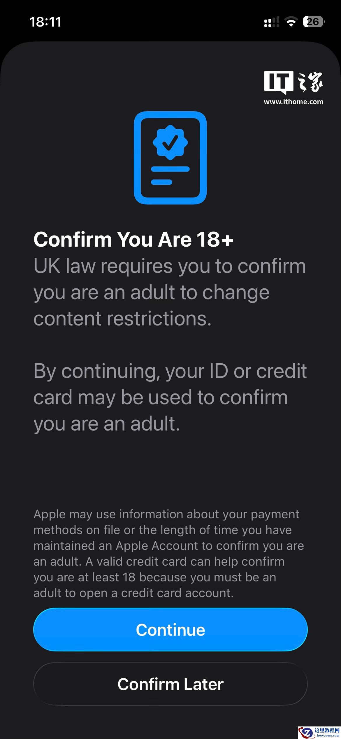 13、苹果 iOS 26.4 在英国引入强制年龄验证,数百万 iPhone 用户需证明已满 18 岁