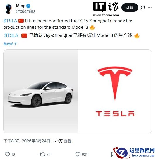 7、特斯拉 Model 3 标准版被曝将在华上市,上海超级工厂新产线已就位