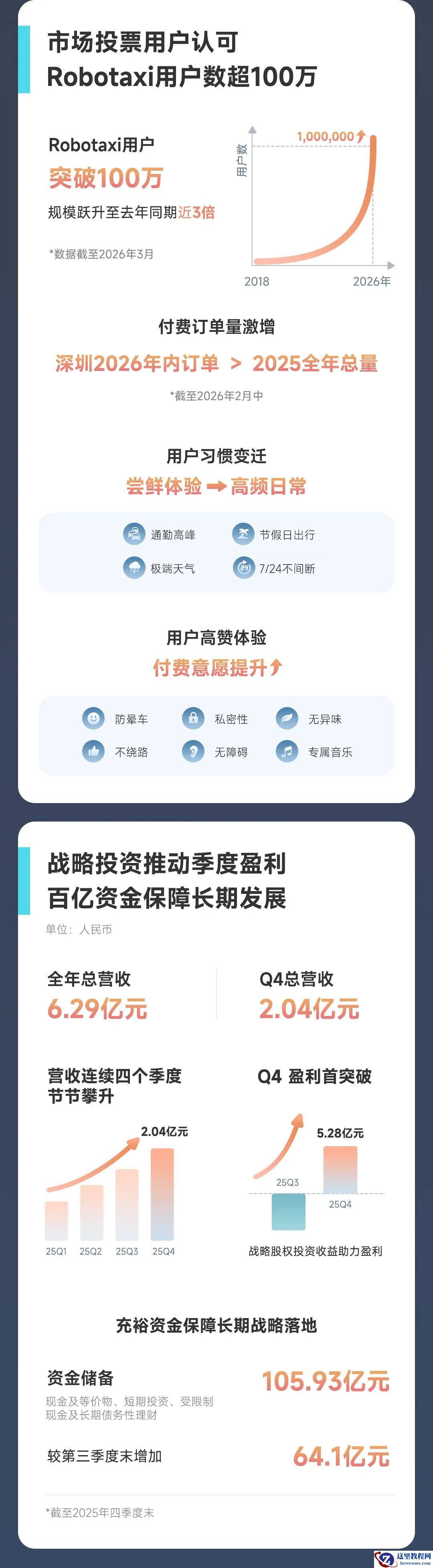注意到,截至 2025 年底,小马智行现金等价物、长短期理财及投资总额达 105.93 亿元。截至 2026 年 3 月,小马智行 Robotaxi 车队规模超 1400 辆,预计年底前车队规模超 3000 辆。
