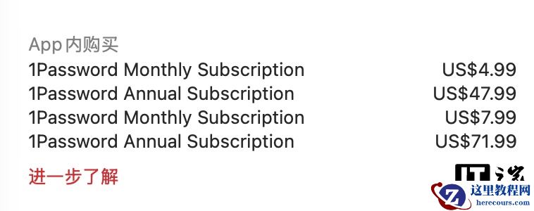 价格方面,参考官方博客及苹果 Apple Store,1Password 的个人套餐的订阅费用已从原先的每月 3.99 美元直接上调至每月 4.99 美元(现汇率约合 34.5 元人民币);而年度订阅费用从原先的 35.99 美元涨至 47.99 美元(现汇率约合 331.4 元人民币)。