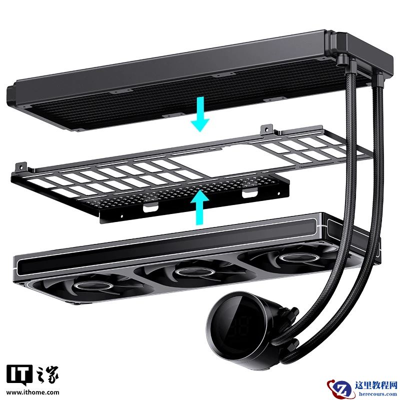 这款机箱可安装 9 颗风扇,其中前部根据电源类型支持 2 颗 120mm 或 140mm 风扇,底部可安装 3 颗 120mm 风扇、后部可安装 1 颗 120mm 风扇;顶部拥有五金支架,支持 3 颗 120mm 风扇与 360 冷排。