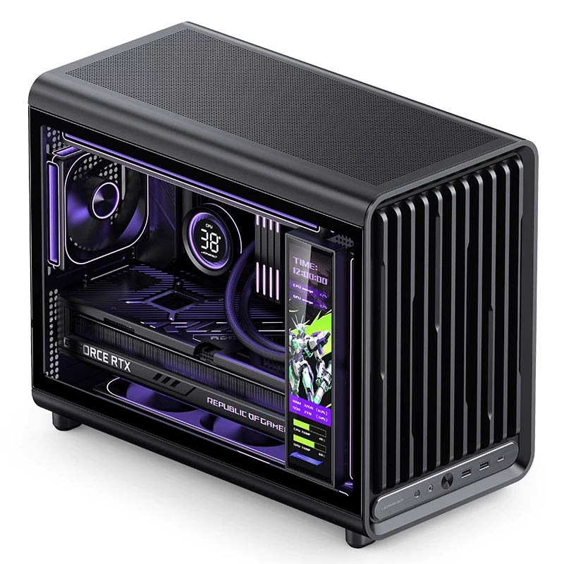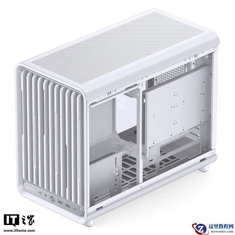 此外,乔思伯 D33 底部配备进风防尘网,前置 I/O 面板包含 1 个 USB-C 10Gbps、2 个 USB-A 5Gbps、开机键、二合一 3.5mm 音频插孔、重启键。