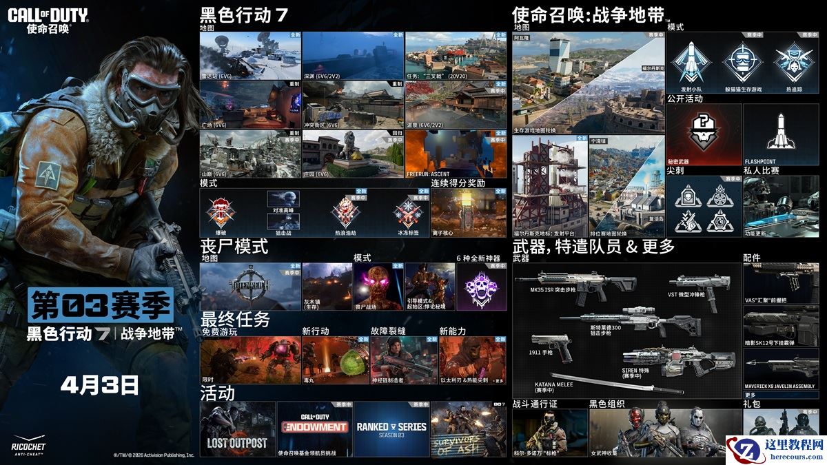 此外,本次更新还将有 9 张多人地图 + 包含“爆破模式”等更多玩法,赛季中生存游戏地图将轮换,最终任务限时开放免费游玩,还带有全新武器、挑战、活动奖励等更多内容。