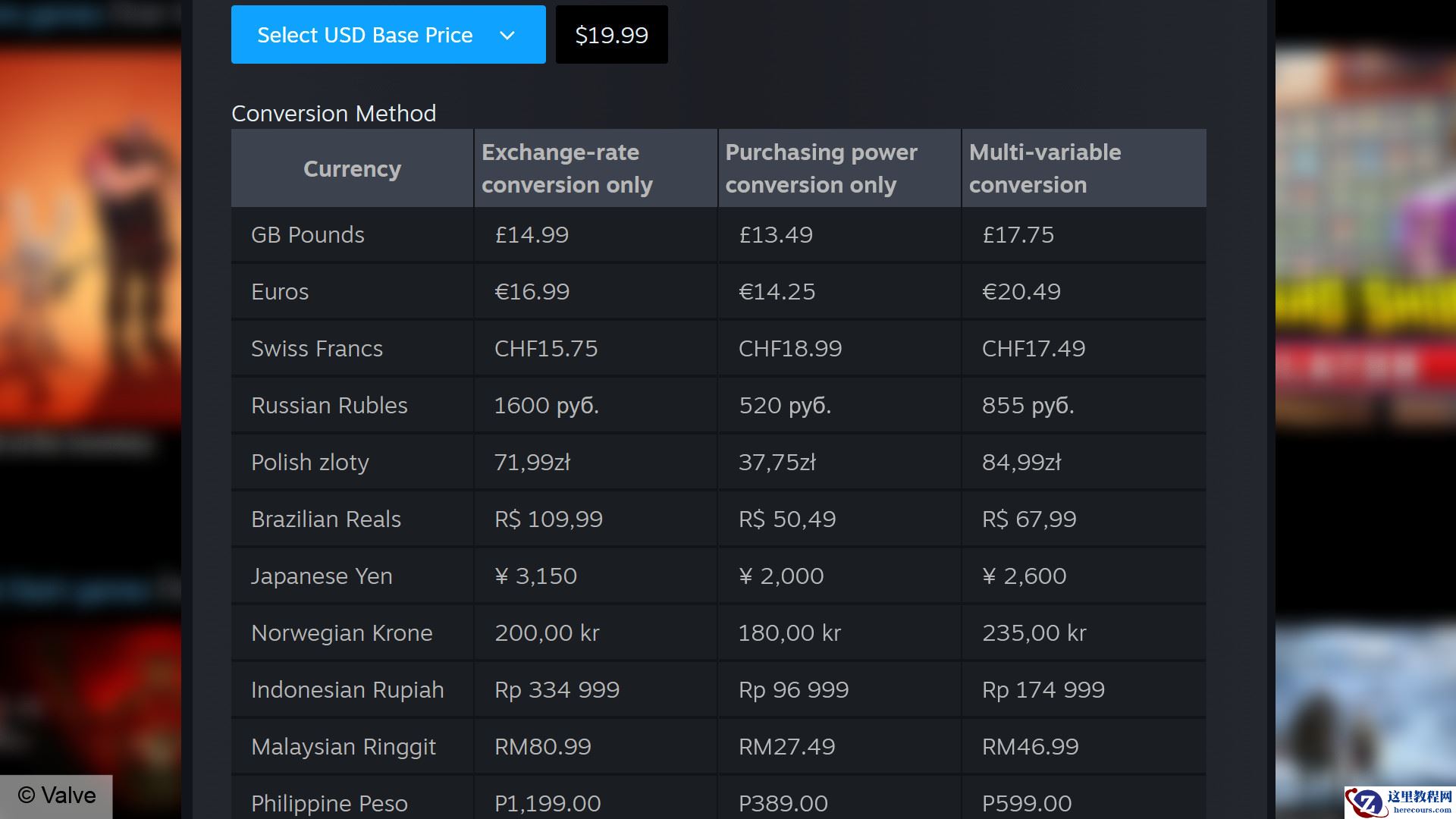 3 月 29 日消息,当地时间 3 月 28 日,Valve 宣布为 Steam 平台的定价工具推出重要更新,新增了修订后的汇率转换数据及多项定价方案,旨在帮助游戏开发者更高效地制定不同国家和地区的游戏售价。此次调整现已全面生效,覆盖全球 35 种货币与 4 个地区组。