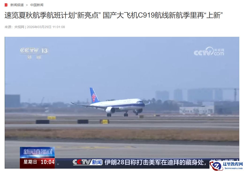 此外,国产大飞机 C919 航线继续“上新”。3 月 29 日,东航新开“西安 — 厦门”航线,季节性恢复“上海虹桥 — 沈阳”航线。南航计划将 C919 机型集中投放在广州至北京大兴、武汉、南京等主线航线。国航也将在新航季新增哈尔滨、厦门两个运营航点,进一步拓展国产飞机运营网络。