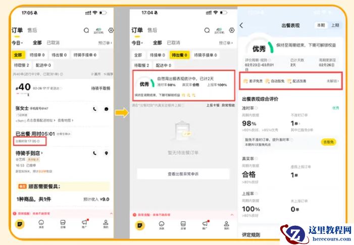 官方介绍称,出餐准时率是指平台基于“门店历史出餐表现”、“实时单量情况”、“订单餐品多少”以及“餐品品类”给出的每笔订单动态出餐时长参考。商家在出餐时长内完成出餐并点击“出餐上报”,即算作准时出餐订单,出餐准时率表现优秀的商家将获得专属权益,未达标商家也不会影响门店流量。