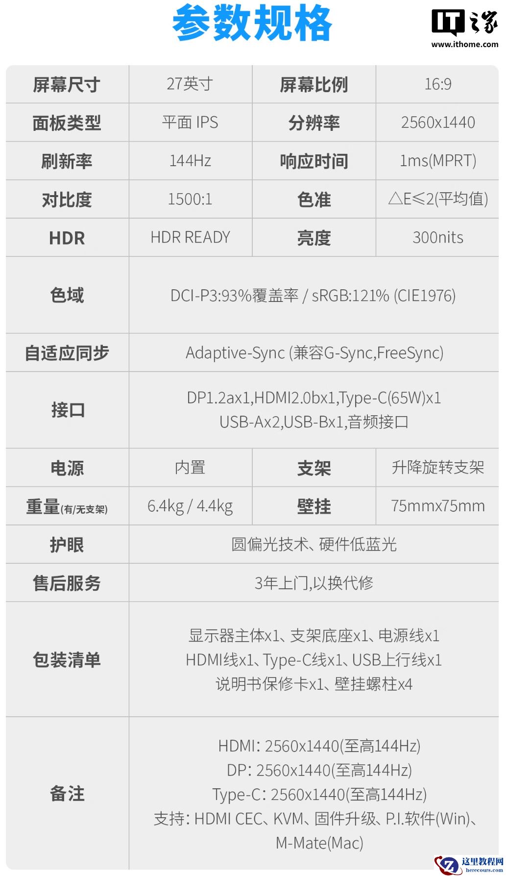 PRO MAX 271QPHW E14 搭载 27 英寸 2K 144Hz IPS 雾面屏,支持 93% DCI-P3 色域,还通过莱茵认证,硬件防蓝光、DC 调光降低频闪。