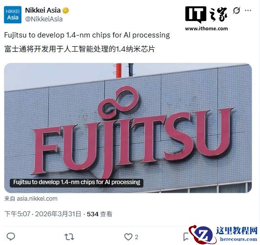 3 月 31 日消息,据日经新闻报道,富士通(Fujitsu)正计划开发一款用于 AI 服务器的定制芯片。该芯片将采用 Rapidus 最先进的 1.4nm 工艺制造,将实现完全的日本本土化(研发与生产)。