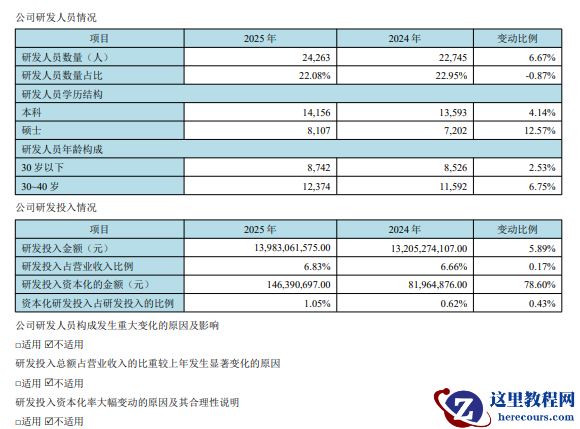 注意到,京东方还持续保持高强度投入,2025 年研发投入达 139.83 亿元,占营业收入比例为 6.83%。