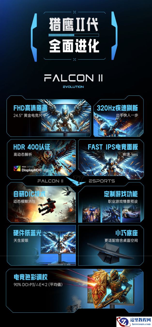 该机配备一块 1920x1080 分辨率 320Hz Fast IPS 面板,显示器响应速度 1ms,SDR 亮度 350 尼特,HDR 亮度 400 尼特,显示器静态对比度 1000:1,支持 8-Bit 色彩,覆盖 90% DCI-P3 色域。