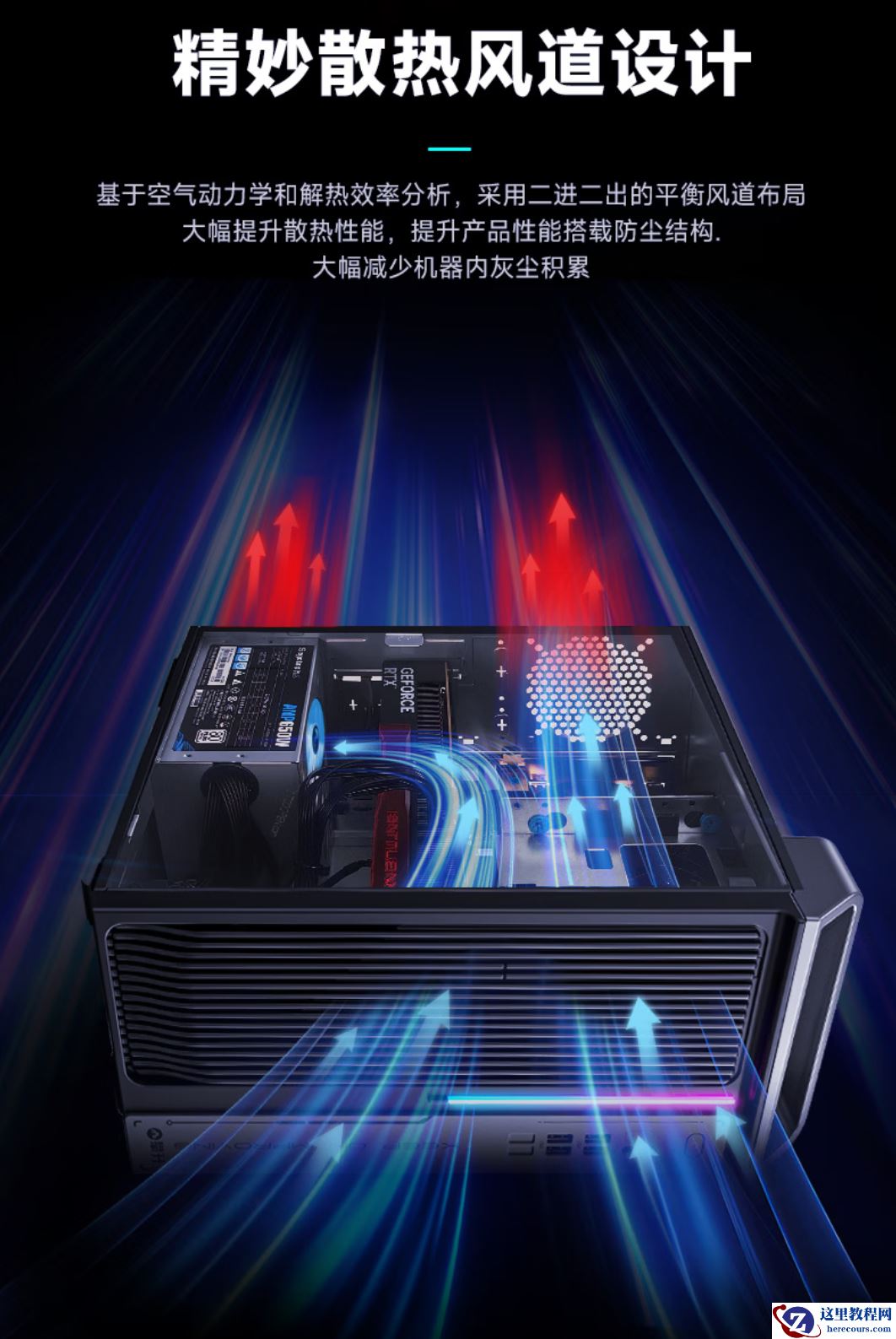 出色的性能表现也离不开优秀的散热设计,攀升 Elite Pro 机箱基于空气动力学和专业风道设计,采用二进二出平衡风道布局,巧妙带出机身热量,让性能释放更持久,机器运行更稳定。售后方面也诚意十足,整机 3 年免费上门服务、免费电话支持和远程协助,让你买得放心,用得安心。