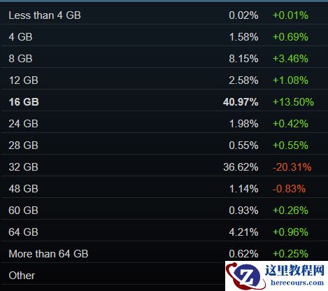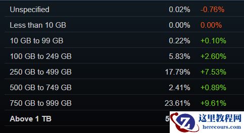 此外,32GB 内存的占比大幅下滑 20.31%,16GB 成为份额第一配置。1TB 以上硬盘份额也大幅下滑。