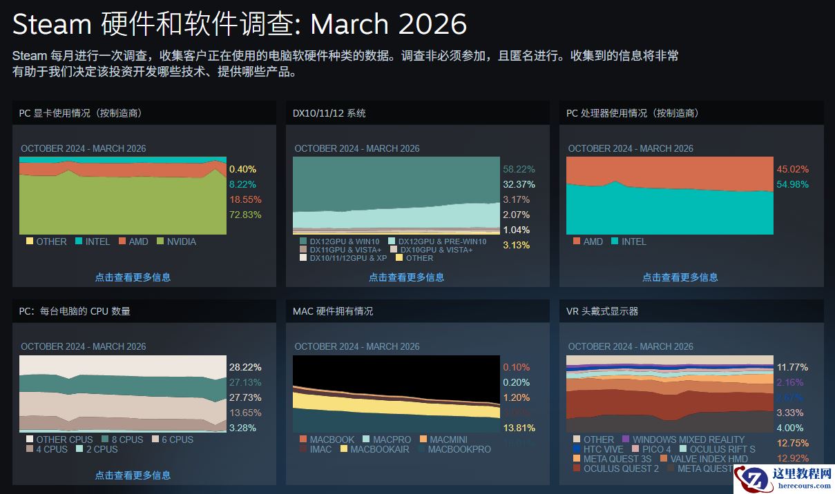 4 月 2 日消息,Steam 每月进行一次调查,收集客户正在使用的电脑软硬件种类的数据。调查非必须参加,且匿名进行。