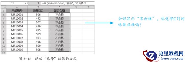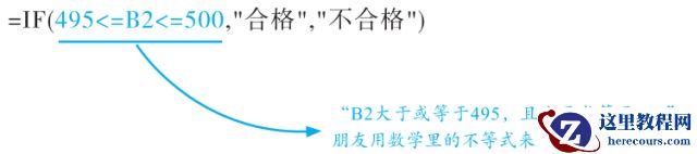 而在公式“=IF(495<=B2<=500,”合格”,”不合格”)”中,“495<=B2<=500”正是导致公式错误的原因,因为它在你和Excel的世界里,描述的并不是同一个规则。